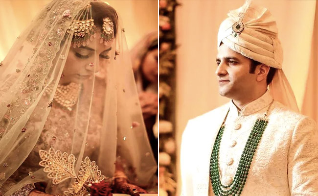 आईएएस अतहर आमिर खान अपने दूसरे निकाह में गजब ढा रहे थे. अपने इस खास मौके पर उन्होंने और उनकी दुल्हनिया ने स्पेशल डिजाइन किए हुए कपड़े पहने थे, जिसमें वो दोनों देखते ही बन रहे थे. निकाह के समय अतहर आमिर खान क्रीम रंग की शेरवानी पहनी हुई थी, जिसके साथ उन्होंने मैचिंग स्टॉल कैरी किया हुआ था. वहीं गले में हरे रंग की माला और सिर पर क्रीम कलर की पगड़ी भी बनी हुई थी. इसी तरह महरीन काजी हैली कढ़ाई वाली लहंगा-चोली पहनी हुई थीं. इसके साथ ही महरीन ने मैच करती हुई कुंदन की ज्वैलरी और गले में हैवी नेकलेस पहना था, जो उनकी खूबसूरती में चार चांद लगा रहा था.