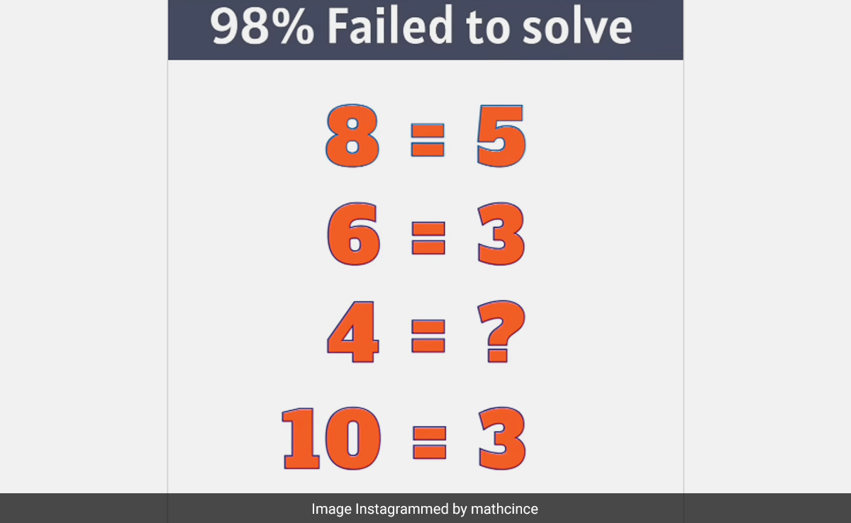 इंस्टाग्राम पर शेयर किए गए ब्रेन टीज़र के साथ लिखे कैप्शन में लिखा है, "अपने जीनियस दोस्त से पूछें." ब्रेन टीज़र के अनुसार, अगर 8 बराबर 5, 6 बराबर 3, और 10 बराबर 3, तो 4 किसके बराबर होगा? साथ ही, इंस्टाग्राम पेज ने प्रश्न को हल करने के लिए एक संकेत भी शेयर किया. इसमें लिखा है, "LHS (left-hand side) [बाएं हाथ] के अक्षर गिनें."