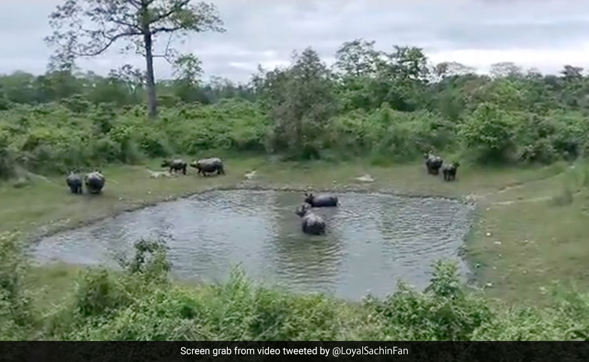 वीडियो, जिसमें पानी से भरे तालाब का आनंद लेते हुए गैंडों का क्रैश दिखाई दिया, ये वीडियो इन आम तौर पर एकान्त प्राणियों के चंचल पक्ष की एक दुर्लभ झलक पेश करता है. पानी में अठखेलियां करते गैंडों का दृश्य, जो अपनी स्वयं की पूल पार्टी करते नज़र आ रहे हैं, बेहद हृदयस्पर्शी और मनोरम है.
