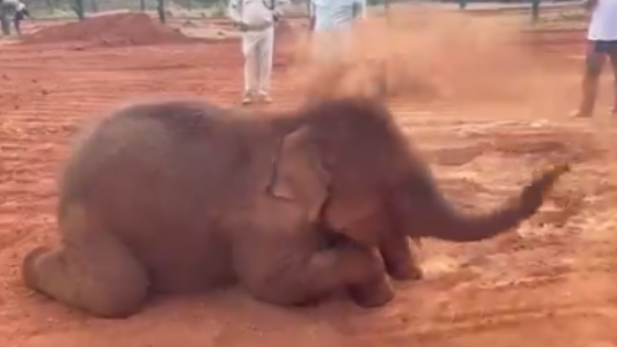 Baby Elephant Taking Dust Bath: इंटरनेट पर अक्सर जानवरों से जुड़े वीडियो वायरल होते रहते हैं, इनमें से कुछ दिल को छू जाते हैं, तो कुछ हैरत में डाल देते हैं. कुछ वीडियो तो ऐसे भी होते हैं, जिसे जितनी बार लूप में देख लो उतना कम है. हाल ही में एक ऐसा ही वीडियो वायरल हो रहा है, जिसे देखकर आपके चेहरे पर भी एक प्यारी सी मुस्कान खिल उठेगी. वायरल हो रहे इस वीडियो में बेबी हाथी की क्यूटनेस और चाल-ढाल आपका भी मन मोह लेगी.