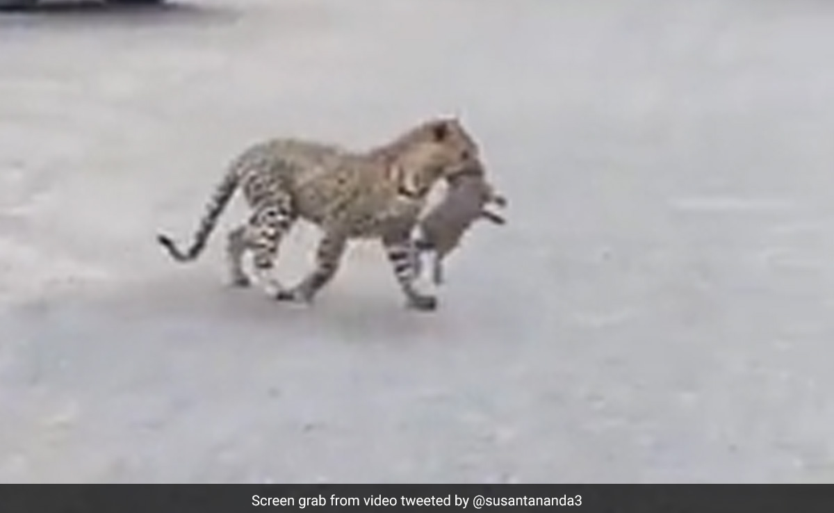 हालांकि वीडियो का स्थान ज्ञात नहीं है, लेकिन इसमें तेंदुए को सड़क पर सूअरों का शिकार करते हुए दिखाया गया है, जहां कई एसयूवी भी खड़ी दिखाई दे रही हैं. तेंदुए ने छलांग लगाकर जंगली सूअर को अपने मुंह में दबोच लिया और वह जिंदा रहने के लिए संघर्ष करता नजर आ रहा है. लेकिन जैसे ही तेंदुआ सड़क पर एक और जंगली सूअर को देखता है, वह तुरंत उसे अपने मुंह से गिरा देता है और दूसरे के लिए भागने लगता है. लेकिन दूसरा जंगली सूअर तेंदुए से आगे निकलने में कामयाब रहा.