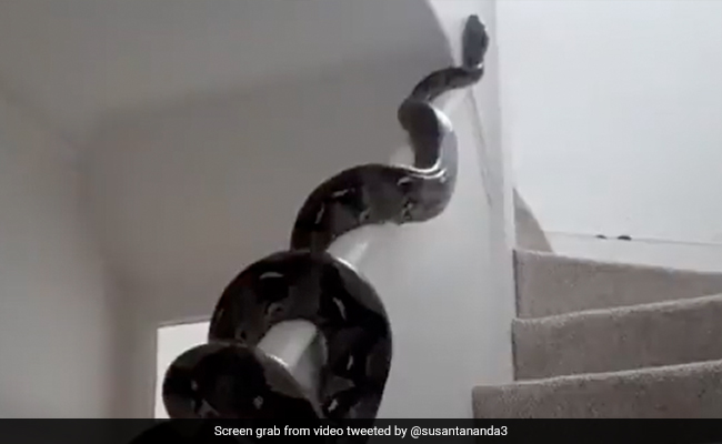 हाल ही में वायरल इस वीडियो में एक अजगर को सीढ़ियों की बगल की दीवार पर चढ़ते हुए देखा जा रहा है. वीडियो में अजगर बड़े ही आराम से धीरे-धीरे आगे बढ़ रहा है और आगे का रास्ता ढूंढता नजर आ रहा है. वीडियो में इस काले रंग के डरावने अजगर को देखकर डर लगना लाजिमी है. इंटरनेट पर इस अजगर का वीडियो तेजी से वायरल हो रहा है.