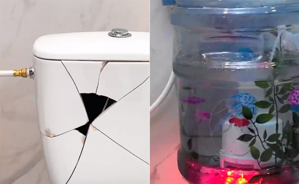 ट्विटर पर फिगेन नाम के एक हैंडल ने एक्वेरियम का ये वीडियो शेयर किया है, जिसमें कोई शख्स सबसे पहले टॉयलेट सीट का फ्लश टैंक निकालता है, इसके बाद प्लास्टिक की बोतल से सारे जरूरी नाप लेकर, इस वॉटर केन को जरूरी जगहों से काटने के बाद, उसमें कुछ नकली पौधे रखकर कुछ नकली मछलियां चिपका देता है. इसके बाद उसे फ्लश टैंक की जगह फिक्स कर दिया. इसके साथ ही ऊपर एक नल भी फिक्स करता है, जिससे हाथ धोने पर या नल चलाने पर उसका पानी भी टैंक में ही गया. जैसे-जैसे इस फ्लश टैंक में पानी भरता गया. इसकी खूबसूरती बढ़ती गई.