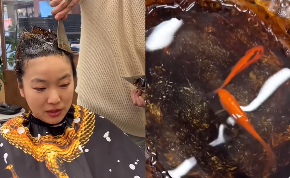 इंस्टाग्राम पर यह वीडियो पोस्ट किया गया है. वीडियो में दिख रहा है कि एक बड़े सैलून में कुर्सी पर एक महिला ग्राहक बैठी है. महिला आराम से बैठकर अपना मोबाइल देख रही है. वहीं, सैलून के दो हेयर आर्टिस्ट महिला के सिर पर उनके बालों में कुछ जेली जैसी कोई चीज लगाकर इसे किसी बर्तन का आकार दे देते हैं. इसके बाद उसमें पानी डालकर कुछ गोल्डन कलर की छोटी मछलियों को छोड़ देते हैं. वहीं, स्माइल करती महिला अपने मोबाइल को देखने में बिजी है.