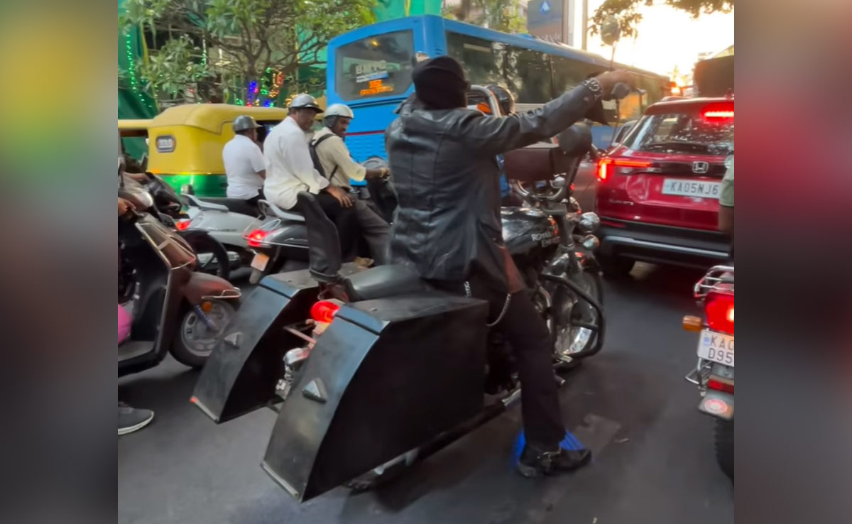दरअसल, बाइकिंग के शौकिन कई लोग घोस्ट राइडर की तरह बाइक खरीदते रहते हैं. वहीं रोड पर एडवेंचर पसंद करने वाले कई लोग अपनी बाइक को कस्टमाइज भी करवा लेते हैं. ऐसे ही किसी शख्स के बेंगलुरु की ट्रैफिक में फंसने पर किसी और राहगीर ने उसका वीडियो बनाकर इंस्टाग्राम पर पोस्ट कर दिया.