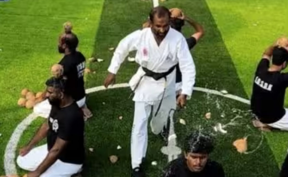 Man Smashes 68 Coconuts On People Heads With Nunchaku: इन दिनों एक भारतीय व्यक्ति अपने कारनामे के चलते सोशल मीडिया पर चर्चा का विषय (trending news) बना हुआ है. शख्स के टैलेंट की वजह से ही अब देशभर में उसकी तारीफों के पुल बंध जा रहे हैं. दरअसल, एक शख्स ने महज 1 मिनट में 68 नारियल तोड़कर खुद अपने ही रिकॉर्ड (Guinness World Records) को पीछे छोड़ दिया है. मार्शल आर्ट में दक्ष के वी सैदालवी ने इसके लिए ननचाकू का इस्तेमाल किया और एक के बाद एक 68 नारियल तोड़ डाले.