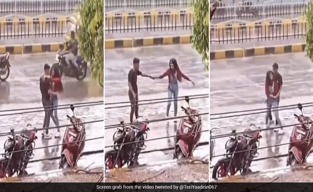 मध्य प्रदेश में मौसम ने करवट ले ली है. मानसून के दस्तक देते ही पूरा राज्य खुशनुमा हो चला है. इस बीच देश के सबसे क्लीन शहर कहे जाने वाले एमपी के इंदौर शहर में तड़कती-भड़कती गर्मी से राहत मिलते ही लोग घरों से बाहर आकर सुहावने मौसम का आनंद लेते नजर आ रहे हैं. ऐसे में सोशल मीडिया पर इन दिनों इंदौर शहर का एक रोमांटिक वीडियो लोगों का ध्यान अपनी ओर खींच रहा है, जिसमें एक कपल बाहों में बाहें डालकर सड़क पर झमाझम बारिश में भीगते हुए डांस करता नजर आ रहा है, जिन्हें देखकर लोगों को शाहिद-करीना के तुम से ही मोमेंट याद आ रहा है.