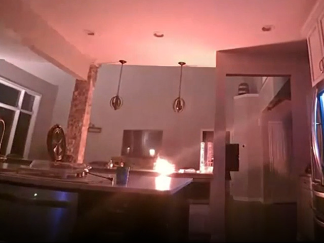 22-सेकंड के एक वीडियो में एक रसोईघर दिखाया गया है, जहां अंधेरा है. और फोन के अचानक आग के गोले में बदल जाने पर रोशनी हो जाती है.