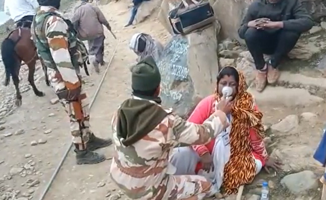 अमरनाथ यात्रा के दौरान कई श्रद्धालुओं को परेशानी का सामना करना पड़ता है. श्रद्धालुओं को कई परेशानियों का सामना करना पड़ता है. ऊंचाई ज्यादा होने के कारण लोगों को सांस लेने में ज्याद दिक्कत होती है. ऐसे में आईटीबीपी के जवान हमेशा मुस्तैद रहते हैं. मेडिकल सेवाओं के साथ यात्रियों की सेवा करने में लगे रहते हैं. रेस्क्यू अभियानों (Rescue Operations) में विशेषज्ञ पर्वत प्रशिक्षित बल भारत-तिब्बत सीमा पुलिस (ITBP) अमरनाथ यात्रा 2022 की सुरक्षा ड्यूटी करने के साथ ही यात्रा के दौरान ऊंचाई वाले स्थानों पर जरूरतमंद यात्रियों को ऑक्सीजन (Oxygen) सहायता भी प्रदान कर रही है. सोशल मीडिया पर एक वीडियो वायरल हो रहा है, जिसमें देखा जा सकता है कि जवान कुछ श्रद्धालुओं को ऑक्सीजन दे रहे हैं.