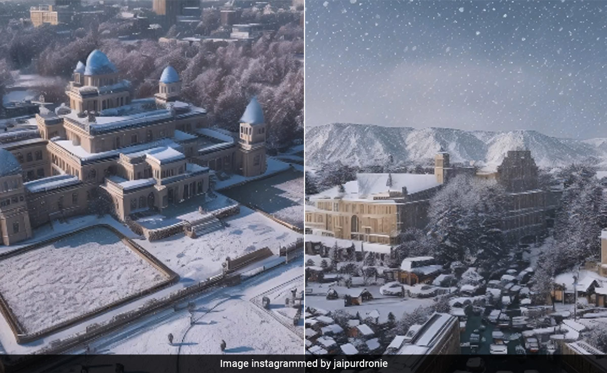 हाल ही में, एक इंस्टाग्राम पेज ने कल्पना की, कि अगर जयपुर (Jaipur) शहर बर्फ की परतों से ढका होता तो कैसा दिखता. क्लिप में बर्फ की खूबसूरत चादर में लिपटे वर्ल्ड ट्रेड पार्क, पांच बत्ती, जल महल, जगतपुरा, इसरलाट, सिटी पार्क, आर टेक मॉल और जेएलएन मार्ग और अल्बर्ट हॉल जैसे स्थानों को दिखाया गया है. कहने की जरूरत नहीं है, तस्वीरें स्वप्निल और जादुई लग रही हैं.