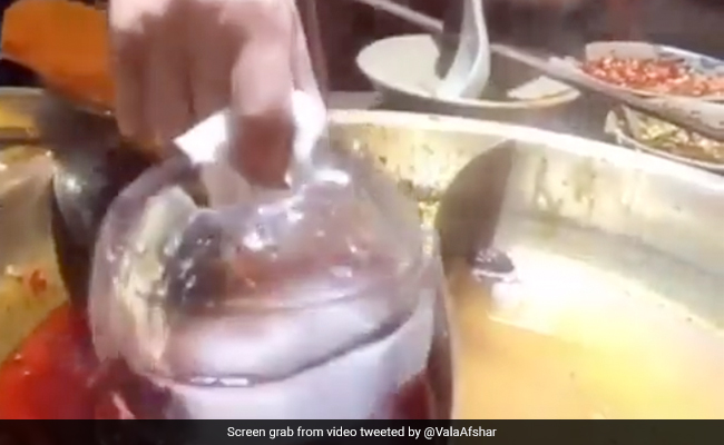 वाला अफशर (@ValaAfshar) द्वारा ट्विटर पर पोस्ट किए गए एक वायरल वीडियो में दिखाया गया है कि कैसे एक शख्स एक गोल आकार के बर्फ के बड़े टुकड़े को एक तैलीय शोरबा में डुबोता है. दिलचस्प बात यह है कि डिश के ऊपर तैरने वाली चिकनाई की परत बर्फ के टुकड़े से चिपक जाती है और फिर सेकंड के भीतर उस पर जम जाती है. फिर शख्स प्रक्रिया को दोहराने से पहले बर्फ से जमी हुई चिकनाई की परत को आसानी से हटा देता है.