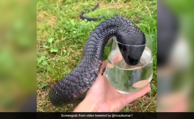 सोशल मीडिया पर किंग कोबरा (black cobra snake) का एक वीडियो तेजी से वायरल हो रहा है. जिसमें किंग कोबरा कांच के ग्लास से पानी पीते हुए दिखाई दे रहा है, ग्लास को एक शख्स ने अपने हाथों में पकड़ रखा है. कोबरा, सांप की सबसे जहरीली प्रजातियों में से एक है और खासतौर पर दक्षिण पूर्व एशिया में पाए जाते हैं. किंग कोबरा (king cobra)- कोबरा प्रजाति में सबसे लंबा सांप होता है और आमतौर पर भारत में पाया जाता है.