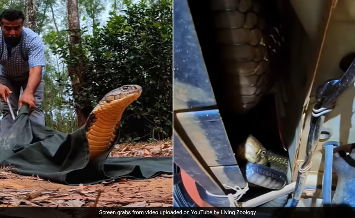 सांप का नाम सुनते ही लोगों के रोंगटे खड़े हो जाते हैं. ये खौफनाक जीव सबसे मुश्किल स्थानों में फिसलने और खुद को चतुराई से छिपाने में भी काफी सक्षम हैं. इसलिए, उन्हें सबसे मुश्किल जगहों पर देखना बहुत आम बात है. आप अक्सर सोशल मीडिया पर किंग कोबरा (King Cobra) और दूसरे सांपों के वीडियो देखते होंगे जिनमें वो कभी स्कूटी में छिपे बैठे होते हैं तो की घर की छत में छिप जाते हैं. अब जो वीडियो वायरल हो रहा है, इसमें एक किंग कोबरा (King Cobra) कार में छिपा बैठा दिखाया गया है. जब उसे निकालने की कोशिश की गई तो उसने निकालने वाले शख्स पर ही हमला कर दिया.