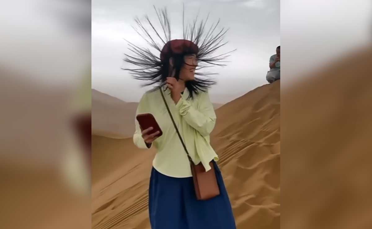 अगर आप कहीं खुली जगह या फिर ऊंची जगह घूमने निकले हो और उस वक्त आपके बाल भी इस तरह से खड़े हो जाए हैं, तो यकीनन आप भी पहले तो इसे मजाक में लेंगे और फिर भूल जाएंगे, लेकिन आपको बता दें कि, ये बिल्कुल फनी है, बल्कि इसके पीछे की वजह जानकर आप भी दांतों तले उंगली दबा लेंगे. हाल ही में एक ऐसा ही वीडियो सामने आया है, जिसमें देखा जा सकता है कि, एक परिवार रेगिस्तान में छुट्टी मानते हुए मजे से घूम रहा होता है, लेकिन तभी एक-एक कर के परिवार के हर सदस्य के सिर के बाल इस तरह से हवा में उड़ते नजर आते हैं. पहले तो सब इसे मजाक में ले लेते हैं, लेकिन सही मायने में ये बहुत बड़ी आपदा की निशानी थी, ऐसा वीडियो में दावा किया जा रहा है.