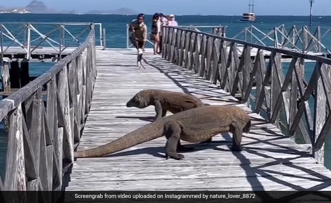 कई बार सोशल मीडिया पर ऐसे वीडियो वायरल हो जाते हैं जिन्हें देखकर कुछ पल के लिए तो रोंगटे खड़े हो जाते हैं और इंसान इन वीडियोज को देखकर ये शुक्र मनाता है कि अच्छा हुआ जो वो वहां नहीं था. ऐसे वीडियो आपको हंसाते जरूर हैं लेकिन साथ ही उन लोगों की हालत भी बयां करते हैं जो जान पर खेलकर आपके लिए ऐसे वीडियोज निकाल लाते हैं. ऐसा ही एक वीडियो वायरल हो रहा है जिसमें समुद्र पर बना पुल पार कर रहे लोगों के सामने एकाएक कोमोडो ड्रैगन (komodo dragon) आ जाते हैं. इस वीडियो को कुछ दिन पहले इंटरनेट पर डाला गया था और ये अब वायरल हो रहा है.