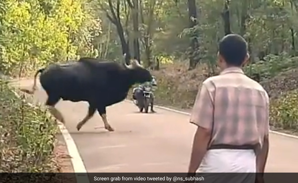 अक्सर जंगल (wild animal video) से लगे रास्तों से गुजरते वक्त कुछ लोगों का जंगली जानवरों से आमना-सामना हो ही जाता है, लेकिन कई बार जंगली जानवर खुद को असुरक्षित पाते हुए राह चलते लोगों पर हमला भी बोल ही देते हैं. सोशल मीडिया पर अक्सर ऐसे वीडियो देखने को मिलते ही रहते हैं, जिनमें से कुछ दिल को छू जाते हैं, तो कुछ दिल दहला देते हैं. हाल ही में एक ऐसा ही वीडियो सामने आ रहा है, जिसमें बाइसन (wild Bison video) के झुंड को सड़क पार करते देखा जा सकता है. इस दौरान सड़क पर मौजूद बाइक सवार ताकतवर जंगली मवेशियों के झुंड (Indian gaur crossing the road) को देखकर हक्का-बक्का रह जाता है.