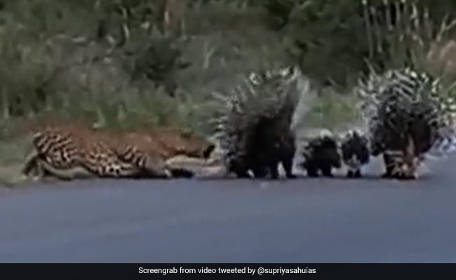 वीडियो में आप देख सकते हैं कि साही के माता-पिता अपने बच्चे के साथ सड़क पार कर रहे हैं तभी एक तेंदुआ उन पर हमला कर देता है. दोनों बच्चे को बीच में रखकर उसको बचाने की कोशिश करते हैं. तेज काँटों ने तेंदुए को बच्चे के करीब जाने से रोक दिया.