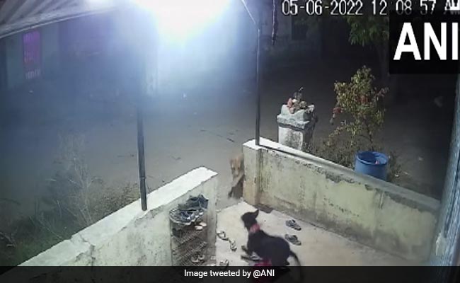 वीडियो में लाल रंग का कॉलर पहने एक काला कुत्ता एक नीची दीवार पर बैठा नजर आ रहा है. कुछ सेकंड बाद, एक तेंदुआ फ्रेम में दिखाई देता है. जबकि तेंदुआ शुरू में पीछे हटता है, वह वापस भागता है और कुत्ते पर हमला करता है. कुछ देर की तकरार के बाद तेंदुआ कुत्ते को अपने जबड़े में लेकर चला जाता है.