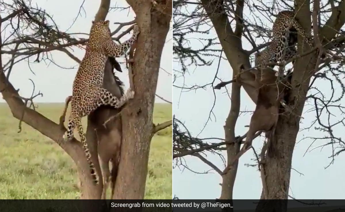 ऐसा पहली बार नहीं है, जब तेंदुआ अपने से बड़े किसी शिकार को लेकर इस तरह पेड़ पर चढ़ता नजर आया हो. सोशल मीडिया पर ऐसे कई वीडियो आये दिन देखने को मिलते रहते हैं. सोशल मीडिया प्लेटफॉर्म ट्विटर पर इस वीडियो को शेयर किया गया है, जिसे खूब देखा और शेयर किया जा रहा है. वीडियो को शेयर करते हुए कैप्शन में लिखा गया है, 'जबड़े की ताकत तो कमाल है.'