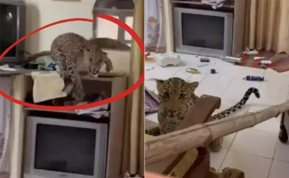 इंस्टाग्राम पर इस वीडियो को sachkadwahai नाम के अकाउंट से शेयर किया गया है. वीडियो में देखा जा सकता है कि होटल रूम में बंद तेंदुए ने कमरे में हलचल मचा रखी है. तेंदुए ने कमरे के सामान को यहां-वहां बिखेर कर रखा है और उसे देख ऐसा लग रहा है, जैसे वह शिकार की तलाश में है. खिड़की के बाहर से कुछ लोग तेंदुए का वीडियो बना रहे हैं, जैसे ही तेंदुए को इस बात का अंदाजा होता है कि बाहर इंसान खड़े हैं तो वह जोरदार छलांग मार कर उनकी ओर लपकता है, हालांकि कमरा बंद था और उसे जल्द समझ आ जाता है वह शिकार नहीं कर सकता.