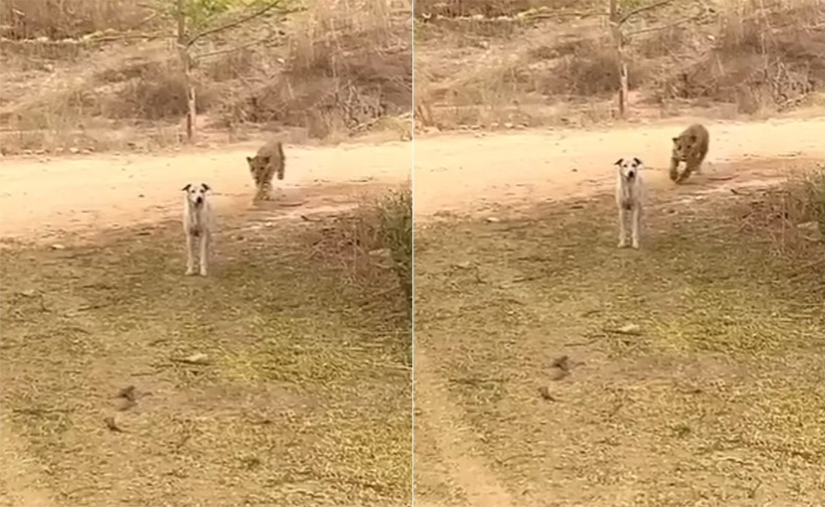 वीडियो में देखा जा सकता है कि कुत्ता जंगल में घूम रहा है. लेकिन जैसे ही वो कुछ दूर चलता है, पीछे सूखी घास में छिपा बैठा एक तेंदुआ, चुपके से कुत्ते के पीछे-पीछे चलने लगता है और पलक झपकते ही तीन फीट दूर से छलांग मारकर कुत्ते पर झपट पड़ता है. तेंदुआ सीधे कुत्ते के गले पर अटैक करता है और कुछ ही पलों में उसकी जान ले लेता है. वीडियो के आखिर में आप देखेंगे कि तेंदुआ कुत्ते को मुंह से दबाकर जंगल के अंदर ले जा रहा है.