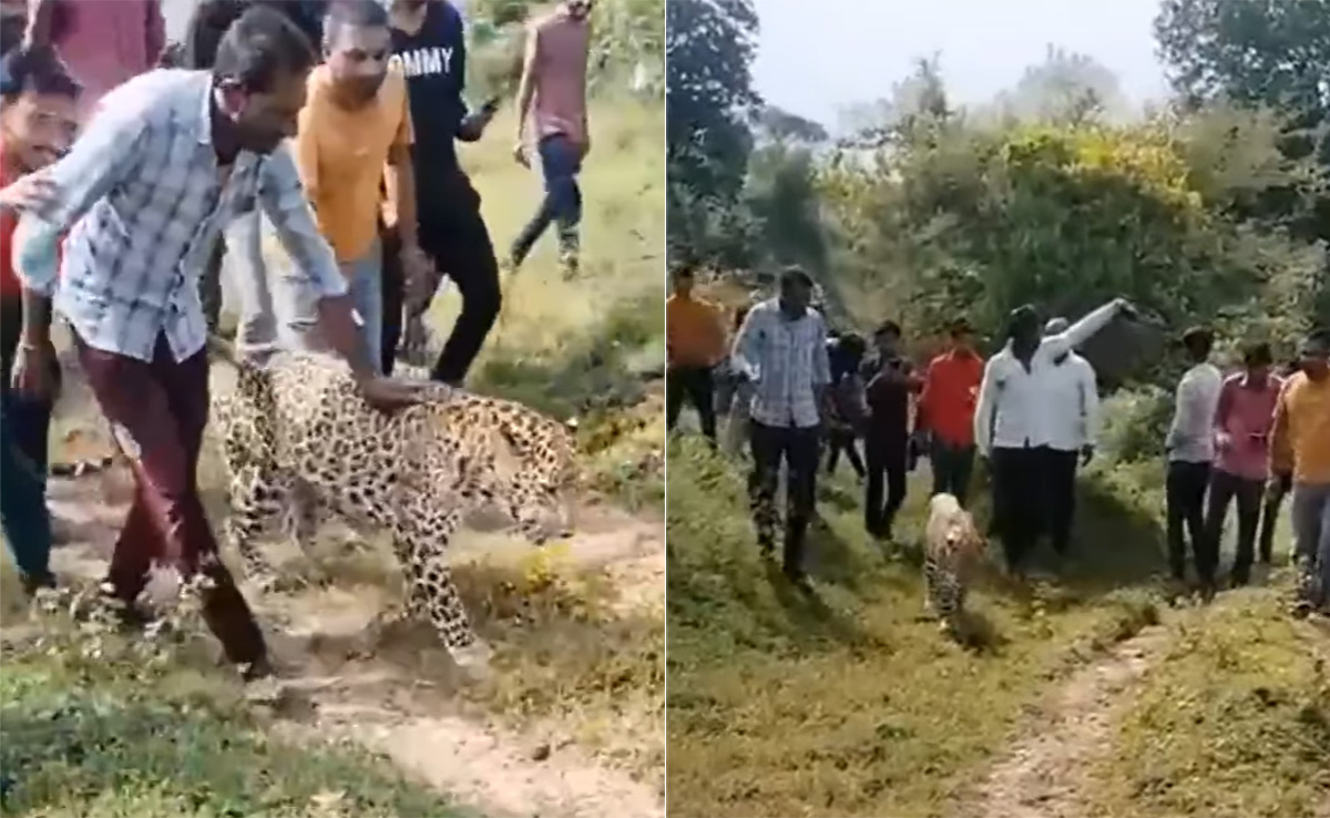 बाघ, शेर और तेंदुए जैसे जानवरों का जिक्र होते ही एक आदमखोर जानवर की तस्वीर आंखों के सामने नाचने लगती है, जिसने किसी इंसान को देखा नहीं कि उस पर झपट पड़े. इंसान अगर सामने आ जाएं, तो फिर उसका बचना मुश्किल है. ऐसे में क्या आप इस बात की कल्पना भी कर सकते हैं कि, तेंदुए के आगे पीछे दर्जनों लोग चल रहे हो और जमकर शोर भी मचा रहे हो और तेंदुआ बिना कुछ बोले या कोई भी हरकत किए चुपचाप चलता जाए.