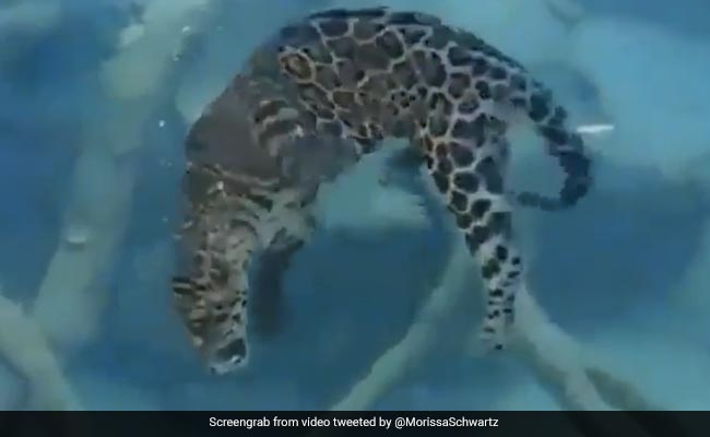 तैराकी करता दिखा तेंदुआ