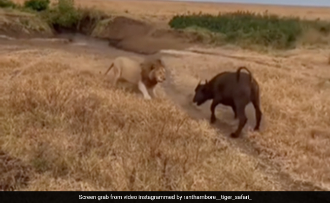 वायरल हो रहे इस वीडियो में आप देख सकते हैं कि शेर तेजी से भैंसे का पीछे दौड़ते हुए आगे बढ़ रहा है. और भैंसा अपनी जान बचाने के लिए भाग रहा है. अचानक दोनों रुकते हैं और एक दूसरे के आमने सामने खड़े हो जाते हैं. फिर शेर भैंसे पर हमला करता है और अपने दो पंजों से भैंसे को गिराकर उसे दबोच लेता है.