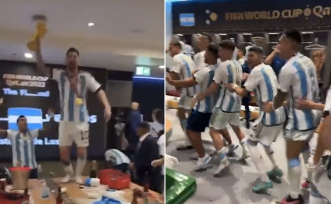 दरअसल, मैदान के बाद असल जश्न लॉकर रूम में देखने को मिला, जिसका वीडियो सोशल मीडिया पर तेजी से वायरल हो रहा है. ड्रेसिंग रूम पार्टी में खिलाड़ी सीटियां बजाते हुए दिल खोलकर नाचते-गाते दिखे. वहीं इस दौरान चमचमाती ट्रॉफी को हाथों में लेकर मेसी टेबल पर चढ़ गए और कूद-कूद कर डांस करते हुए अपनी खुशी जाहिर करने लगे. सोशल मीडिया प्लेटफॉर्म ट्विटर पर इस ड्रेसिंग रूम पार्टी का यह वीडियो शेयर किया गया है. इस वीडियो को अब तक 1.8 मिलियन बार देखा जा चुका है, जबकि 35 हजार से ज्यादा लोगों ने इस वीडियो को लाइक किया है. वीडियो को देख यूजर्स तरह-तरह के रिएक्शन देते हुए अपना प्यार लुटा रहे हैं.