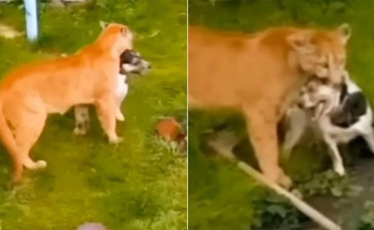 रोंगटे खड़े कर देने वाले इस वीडियो में एक खूंखार शेरनी पालतू कुत्ते का शिकार बनाती नजर आती है. वीडियो में देखा जा सकता है कि, जैसे ही परिवार अपने पालतू कुत्ते को बचाने की कोशिश करने लगता है, शेरनी का गुस्सा उतना ही तेजी से बढ़ने लगता है. घरवाले कुत्ते को बचाने के लिए शेरनी पर लाठी-डंडे फेंकने लगते हैं, ताकि शेरनी कुत्ते छोड़कर वहां से भाग खड़ी हो, लेकिन इसके उल्ट शेरनी कुत्ते की गर्दन को अपने जबड़े में दबाकर आराम से खड़ी रहती है, जैसे कि उसे कोई फर्क ही नहीं पड़ रहा हो. वहीं कुत्ता डर से थर-थर कांपता नजर आ रहा है.