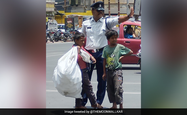 वायरल हो रही तस्वीर में आप देख सकते हैं कि एक तपती धूम में एक ट्रैफिक पुलिस वाला खड़ा है और उसके साथ दो बच्चे भी दिखाई दे रहे हैं. दोनों कचड़ा बिनने वाले लग रहे हैं. जिनमें से एक बच्चा अपने दोनों पैरों को ट्रैफिक पुलिस वाले जिनका नाम रंजीत सिंह है, उनके पैर पर रखे हैं. वायरल हो रही इस फोटो को खुद तस्वीर में नजर आ रहे ट्रैफिक पुलिसवाले ने शेयर किया है. जो किसी और ने भी शेयर की थी.