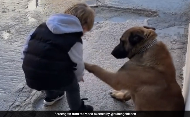 Buitengebieden द्वारा ट्विटर पर शेयर किए गए इस वीडियो में एक छोटा लड़का कुत्ते के सामने झुकता हुआ दिखाई दे रहा है. जैसे ही क्लिप आगे बढ़ती है, कुत्ता अपना पंजा लड़के की ओर बढ़ाता है, तो बच्चा प्यार से पंजा को को पकड़ता है उसे चूम लेता है.वीडियो के साथ कैप्शन में लिखा है, "ट्विटर को इसकी जरूरत है."