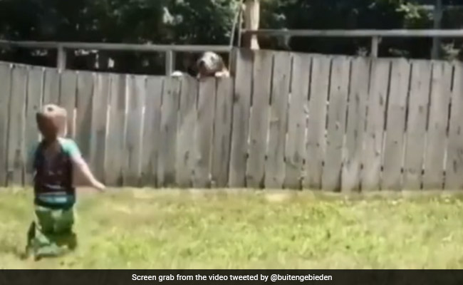 वीडियो में दो साल के बच्चे को अपने पड़ोसी के कुत्ते के साथ खेलते हुए देखा जा सकता है. बच्चे को बगीचे के चारों ओर दौड़ते हुए और बाड़े के पार कुत्ते को गेंद उछालते हुए भी देखा जा सकता है. इस बीच, कुत्ते को गेंद को लाते हुए और अपने प्यारे छोटे पड़ोसी को वापस लौटाते हुए भी देखा जा सकता है.