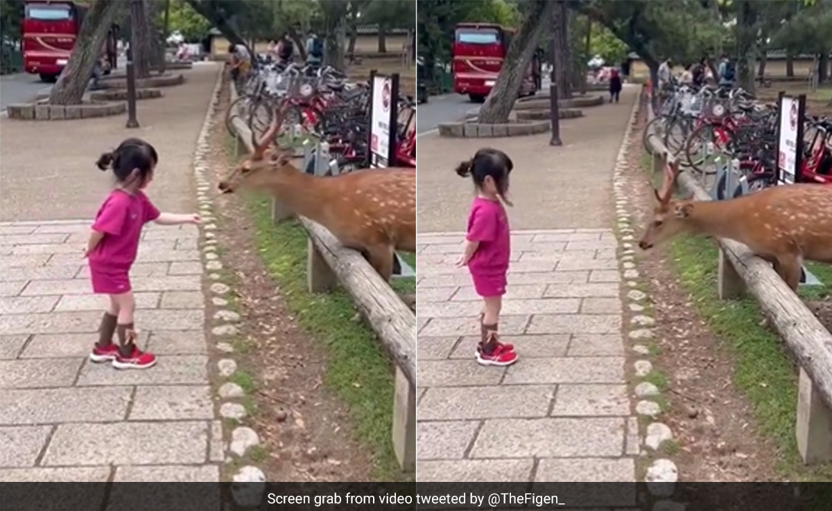 The Figen द्वारा ट्विटर पर शेयर किए गए इस वीडियो में छोटे बच्चे को सींग वाले एक शानदार हिरण के सामने सम्मानपूर्वक झुकते हुए दिखाया गया है. हिरण भी लड़की की नकल करता है और झुक जाता है. लड़की फिर जानवर को खिलाने के लिए आगे बढ़ती है और धन्यवाद के रूप में फिर से झुकती है.