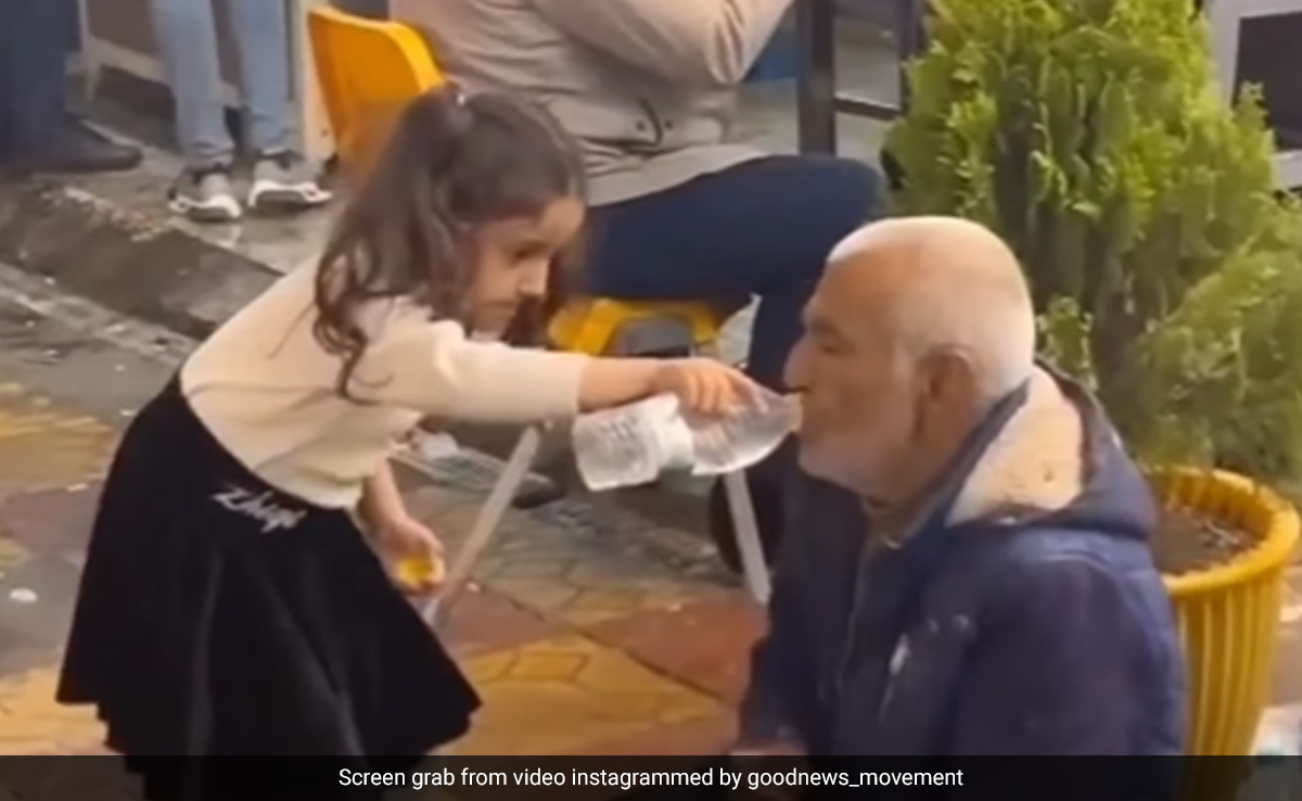 आप जो वीडियो देखने जा रहे हैं वह इंटरनेट पर सबसे अच्छी चीज है, हम शर्त लगाते हैं! इसमें एक छोटी लड़की को एक बुजुर्ग (elderly man) को बोतल से पानी पीने में मदद करते हुए दिखाया गया है. ऐसा लगता है कि उसकी स्थिति के कारण, जब इस लड़की उन्हें देखा तो वह शख्स बोतल को पकड़ने में असमर्थ था.