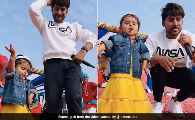 वायरल हो रहे इस वीडियो में आप देख सकते हैं कि स्टेज पर सिंगर अजय हुड्डा कमर तेरी लेफ्ट राइट हाले (Kamar Teri Left Right Halle) गाना परफॉर्म कर रहे हैं. उनके साथ ही स्टेज पर एक छोटी बच्ची भी नजर आ रही है. बच्ची ने पीले रंग का स्कर्ट टॉप और नीली जैकेट पहन रखी है. बच्ची सिंगर के साथ गाने पर डांस कर रही है. बच्ची के साथ सिंगर भी साथ में स्टेप्स करते दिखाई दे रहे हैं. बच्ची बहुत ही जबरदस्त अंदाज़ में एक एक स्टेप्स करके कमर मटका रही है. बच्ची के डांस के आगे तो बड़े-बड़े भी डांसर्स भी फेल हो जाएं.