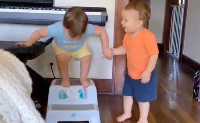 ट्विटर पर शेयर हुए वीडियो में देखा जा सकता है कि दो नन्हे बच्चे टेबल के ऊपर से जंप करते हुए खेल रहे हैं. इसमें से एक बच्चा जंप करने में थोड़ा डरता है, ऐसे में दूसरा बच्चा उसका हौसला बढ़ाता है. ये बहादुर बच्चा पहले खुद टेबल पर से जंप करके दिखाता है, फिर अपने दोस्त को ऐसा करने के लिए मोटिवेट करता है. वह अपने दोस्त का हाथ थाम कर उसे टेबल से जंप करने के लिए प्रोत्साहित करता है. ऐसे में दूसरे बच्चे में भी हिम्मत आती है और वह अपने फ्रेंड का हाथ थाम कर जंप करता है और फिर खुशी से चिल्ला उठता है.