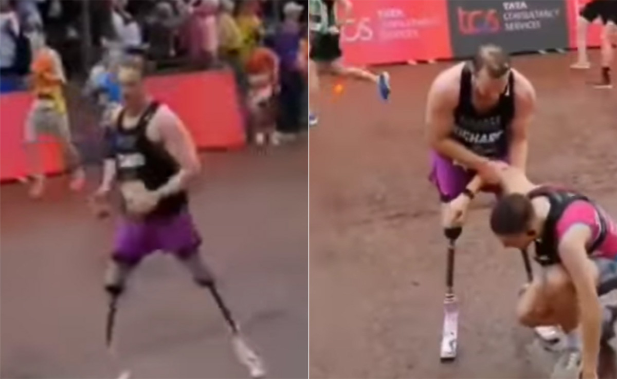 दरअसल, मैराथन के बीच एक व्यक्ति अचानक गिरने लगा. बाकी लोग उसे नजरअंदाज कर दौड़ते रहे, लेकिन अपने प्रोस्थेटिक लेग्स के साथ दौड़ते हुए Richard Whitehead ने ये नजारा देखा तो तुरंत रुक गए. उन्होंने परेशानी में घिरे शख्स की मदद करने की कोशिश की. उन्हें मदद करता देख दूसरे लोग भी पहुंचे और उस गिरते हुए शख्स की मदद करने लगे. Richard Whitehead की जिंदादिली का ये वीडियो Good News movement नाम के इंस्टाग्राम हैंडल ने शेयर किया है.