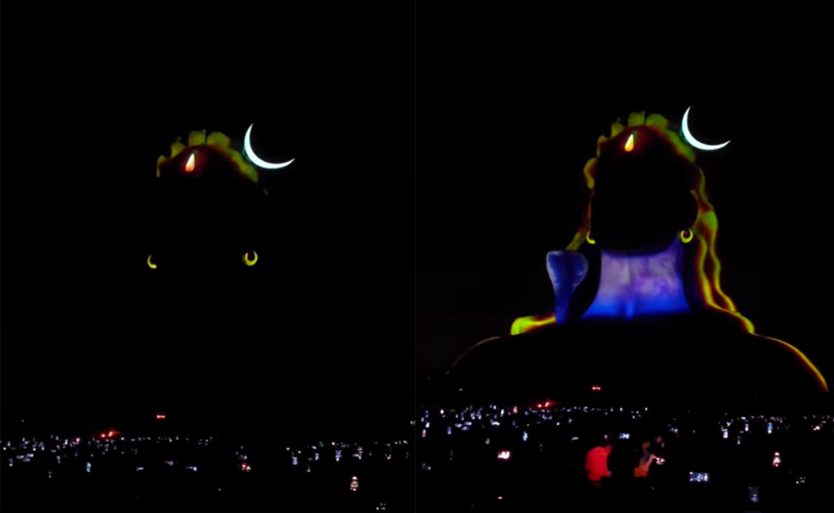 sarath_p_s__ अकाउंट से इंस्टाग्राम पर शेयर इस वीडियो का कैप्शन है 'गूसबंप एट पीक.' यह वीडियो आसमान में चांद और तीन डॉट से शुरू होता है और देखते देखते भगवान शंकर की अद्भुत छवि प्रकट हो जाती है. ये तीन डॉट भगवान के कुंडल और तीसरी आंख थे. माथे पर चांद से लेकर कंधों पर नाग सबके साथ प्रकट होते हैं भगवान. इस विशाल छवि के नीचे खड़े लोग मोबाइल की फ्लैश लाइट लहराते हैं और हर-हर महादेव का जयकारा लगाते हैं. सोशल मीडिया के अनुसार यह इशा फाउंडेशन की ओर से कोयंबटूर में हुए कार्यक्रम का वीडियो है.