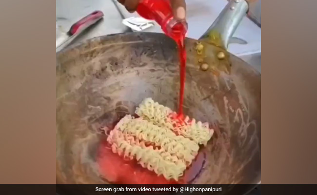 क्लिप में दिखाया गया है कि एक शख्स पानी की जगह फ्राइंग पैन में स्टिंग एनर्जी ड्रिंक डालता है, जिसके बाद वह मैगी का पैकेट खोलता है और पेय में इंस्टेंट नूडल्स मिलाता है. इसके बाद वह कॉम्बिनेशन में मैजिक मसाला, प्याज और हरी मिर्च मिलाते हैं. पकने के बाद, पकवान को एक कटोरे में स्थानांतरित कर दिया जाता है और ग्राहक को सौंप दिया जाता है.