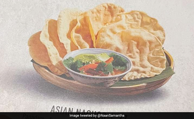 सोशल मीडिया प्लेटफॉर्म ट्विटर पर पापड़ यानि की 'एशियाई नाचोस' की तस्वीर को @NaanSamantha नाम के हैंडल से शेयर किया गया है. पोस्ट शेयर करते हुए कैप्शन में लिखा गया है, 'एक कलिनरी क्राइम किया गया है.' इस पोस्ट को अब तक 557.9K देख चुके हैं, जबकि 8 हजार से ज्यादा लोग इस पोस्ट को लाइक कर चुके हैं. वहीं 1 हजार से ज्यादा लोगों ने इस पोस्ट को रीट्वीट किया है.