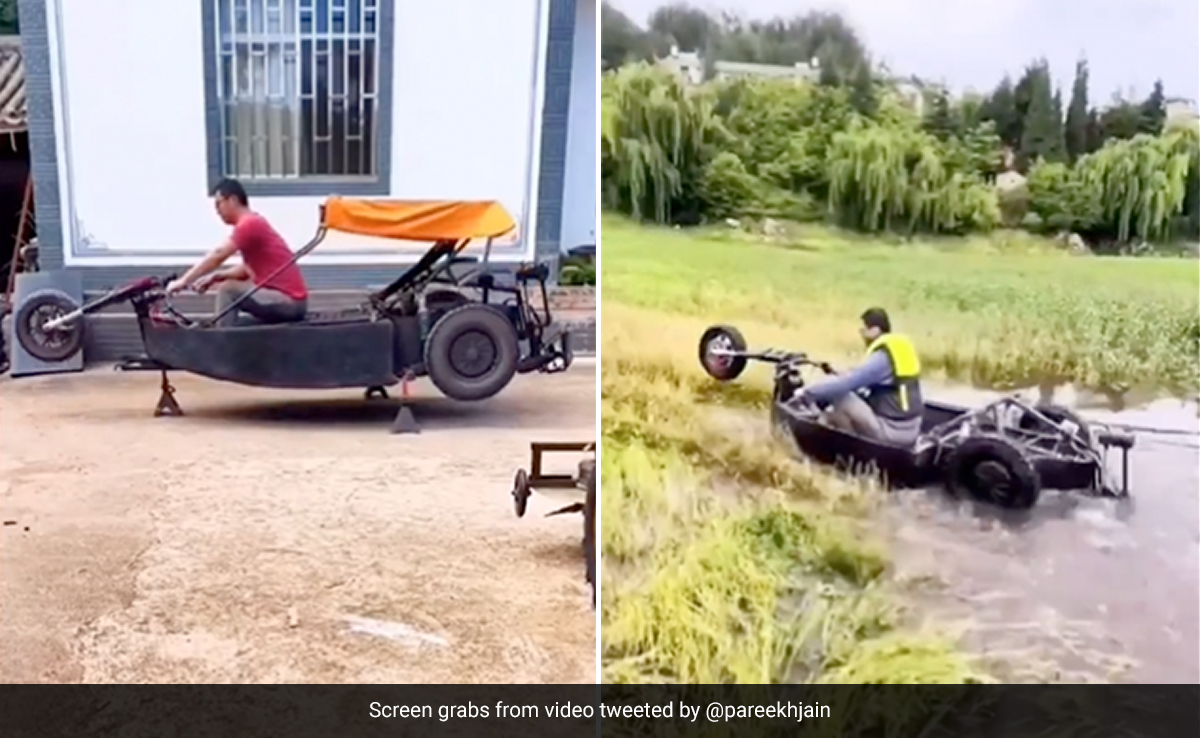 शख्स का जुगाड़ देख लोगों को अपनी आंखों पर भरोसा ही नहीं हो रहा है. वीडियो को ट्विटर पर @pareekhjain नाम के यूजर ने शेयर किया है. वीडियो के कैप्शन में लिखा है- बाइक कम बोट (Bike Cum Boat). 19 सेकंड के इस वीडियो में आप देख सकते हैं कि एक शख्स तीन पहिए वाली एक काले रंग की गाड़ी पर बैठा है. फिर वो हैंडल पकड़कर खींचता है और बड़े आराम से सीट पर लेट जाता है. गाड़ी में उसने ऊपर से छाव का इंतज़ाम कर रखा है. वीडियो में आगे आप देखेंगे कि शख्स बाइक को बोट बनाकर पानी में चलाने लगता है. फिर वो पानी से निकलकर मैदान में अपनी गाड़ी को दौड़ाता दिख रहा है.