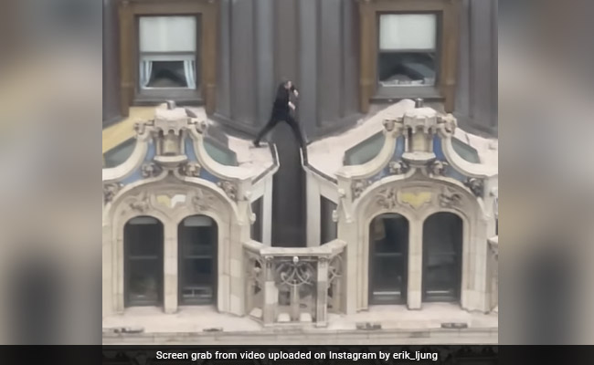 काले रंग के सूट में एक शख्स को अमेरिका के न्यूयॉर्क (New York) में एक ऊंची इमारत की छत पर लापरवाही से कूदते हुए देखा गया. एमी पुरस्कार विजेता फिल्म निर्देशक एरिक लजंग द्वारा पोस्ट किया गया, वीडियो में एक शख्स 115 साल पुरानी 90 वेस्ट सेंट इमारत में एक खिड़की के टॉप पर खड़े होकर अपने फोन पर बात कर रहा है.