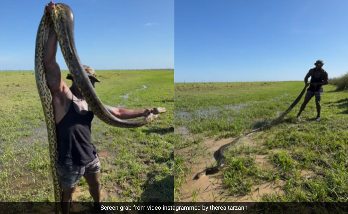 वायरल फुटेज में, साहसी शख्स बड़ी बहादुरी से पानी से भरे खेत में जाता है और विशाल एनाकोंडा का पता लगाता है और उसे पकड़ लेता है. शुरु में उसकी पूंछ पकड़कर, वह सांप को उथले पानी में ले जाता है. तनाव तब और बढ़ जाता है जब वह चतुराई से सांप के मुंह को पकड़ लेता है, जो इस साहसी करतब को देखने वाले किसी भी व्यक्ति को चौंका देगा. एनाकोंडा द्वारा खुद को कुंडली मारकर मुक्त करने के प्रयासों के बावजूद, वह शख्स अडिग रहता है, यहां तक कि वह सांप के माथे पर चूमता भी है.