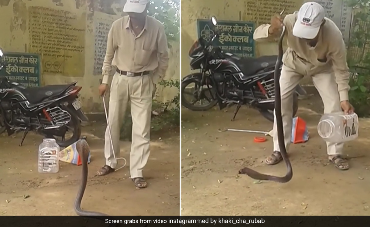वायरल हो रहे इस वीडियो में आप देख सकते हैं कि एक शख्स किंग कोबरा को पकड़ने की कोशिश कर रहा है. उसके हाथ में एक लोहे की छंड़ है और दूसरे हाथ में एक प्लास्टिक का डब्बा है. शख्स जैसे ही किंग कोबरा की पूंछ को पकड़ता है, सांप गुस्साकर शख्स पर हमला करने लगता है, वो हवा में भी कई बार उछलता है, लेकिन कुछ देर की कोशिश के बाद शख्स किंग कोबरा को डब्बे में भरने में कामयाब हो जाता है.