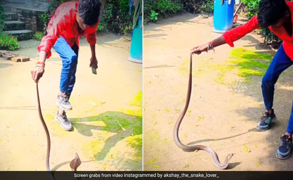 वीडियो में, एक युवक बिना डरे सांप को उसकी पूंछ से पकड़ लेता है और उसके साथ अजीब हरकतें करना शुरु कर देता है, जिसे लोगों का मानना है कि वो शख्स किंग कोबरा के साथ डांस कर रहा है. लेकिन, कोबरा उस शख्स पर हमला करने का खतरनाक प्रयास करके अपनी नाराजगी ज़ाहिर करता है, और किसी तरह वो शख्स भी किंग कोबरा के हमले से अपनी जान बचा लेता है.