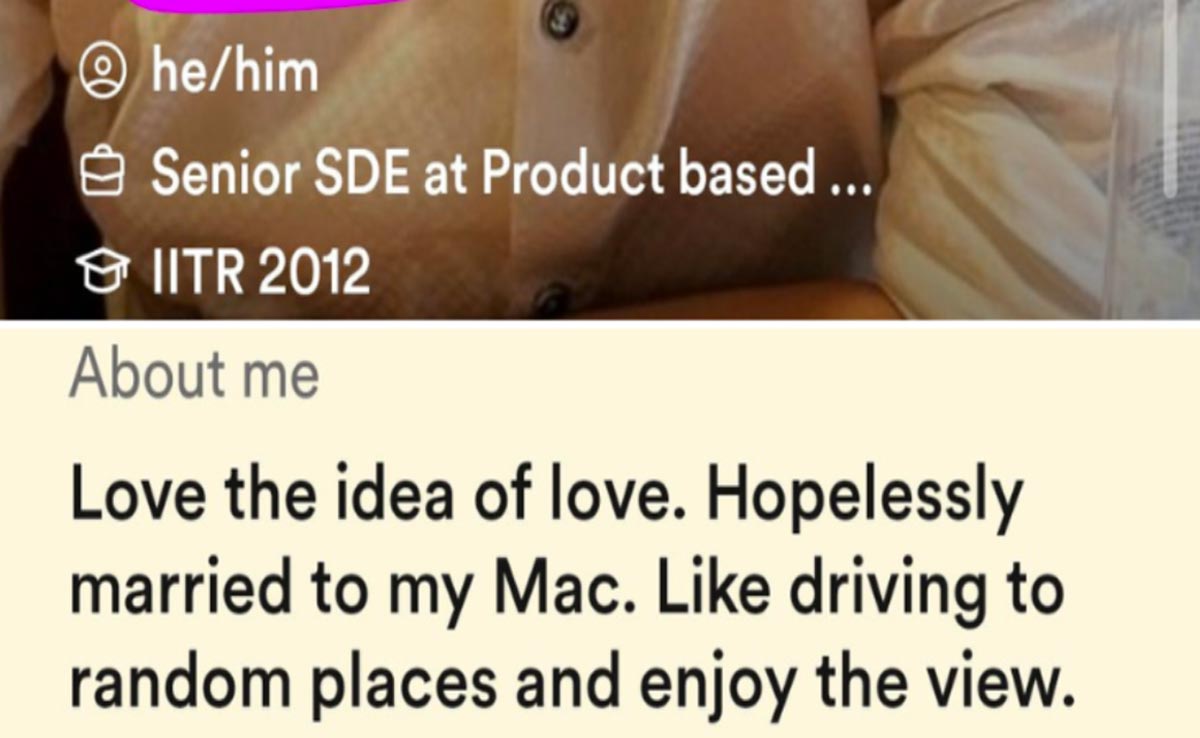 हाल ही ट्विटर यूजर दिशा को डेटिंग एप बंबल पर एक ऐसा ही बायो मिला, जिसमें पार्टनर के लिए खुलकर कास्ट प्रिफरेंस बताया गया है. बायो में अपने बारे में जानकारी देते हुए कहा गया है कि, कुछ बातों को कोई समझौता ही नहीं होगा. उसमें शामिल है कास्ट और नॉन स्मोकिंग. दिशा ने इस बायो को कैप्शन देते हुए लिखा, 'देयर इज नो कास्ट बायस अमॉग एजूकेटेड' और ट्विटर पर पोस्ट कर दिया. इस पोस्ट ने ट्विटर पर कास्ट प्रिफरेंस को लेकर नई बहस छेड़ दी है.