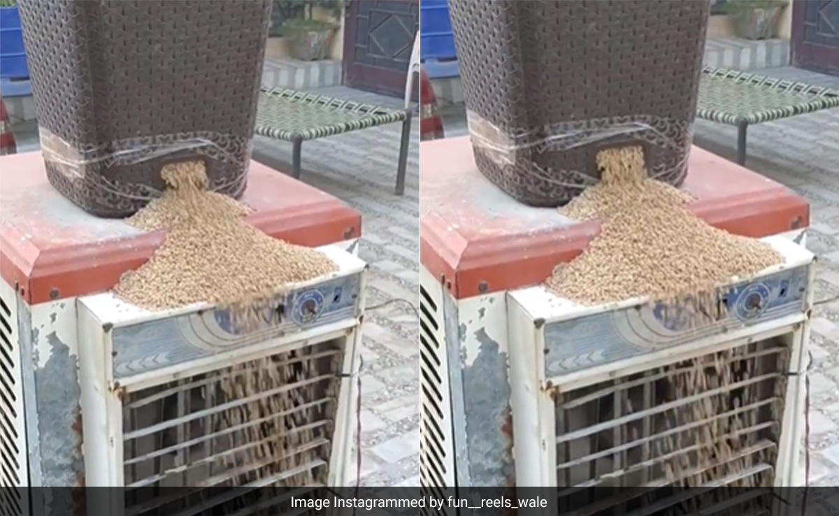 वायरल हो रहे इस जुगाड़ वीडियो को इंस्टाग्राम पर fun__reels_wale नाम के पेज से शेयर किया गया है. वीडियो को अबतक करीब 5 लाख लाइक्स मिल चुके हैं. वायरल हो रहे इस वीडियो में आप देख सकते हैं कि एक बॉक्स जैसे स्टूल को लोहे के कूलर पर रखा गया है. उसमें चार छेद हैं, जिनमें से तीन को टेप की मदद से बंद कर दिया गया है. उसमें गेंहू भरा गया है. ऐसे में जब कूलर चलता है तो उसके वाइब्रेशन से गेंहू धीरे-धीरे नीचे गिरने लगता है, और कूलर के पंखे की हवा से उसमें मौजूद कचरा उड़कर साफ हो जाता है. यह अनोखा जुगाड़ लोगों को बड़े काम का लग रहा है और पसंद भी आ रहा है. वैसे इस वीडियो के बारे में आपका क्या कहना है? कमेंट करके बताइए.