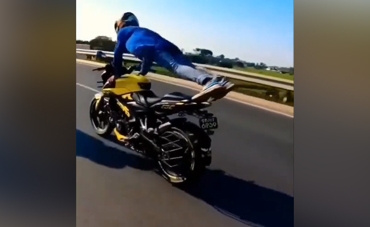 Stunt viral Video: रील्स के इस जमाने हर कोई रातोंरात सोशल मीडिया स्टार बनना चाहता है. इसके लिए लोग किसी भी हद तक जाने को तैयार रहते हैं. सोशल मीडिया पर अक्सर ऐसे वीडियोज सामने आते रहते हैं, जिसमें लोग रील्स बनाने के लिए खुद की जान जोखिम में डालने से भी पीछे नहीं हटते. रील्स की ऐसी ही दीवानगी हाल ही में वायरल इस वीडियो को देखकर समझी जा सकती है, जिसमें बाइक सवार एक शख्स चलती बाइक पर खतरनाक स्टंट करते हुए रील बनवाता नजर आ रहा है. हैरानी की बात तो यह है कि, शख्स चलती बाइक पर पुशअप लगा रहा है, जिसे देखकर सोशल मीडिया यूजर्स के भी होश उड़ गए हैं.