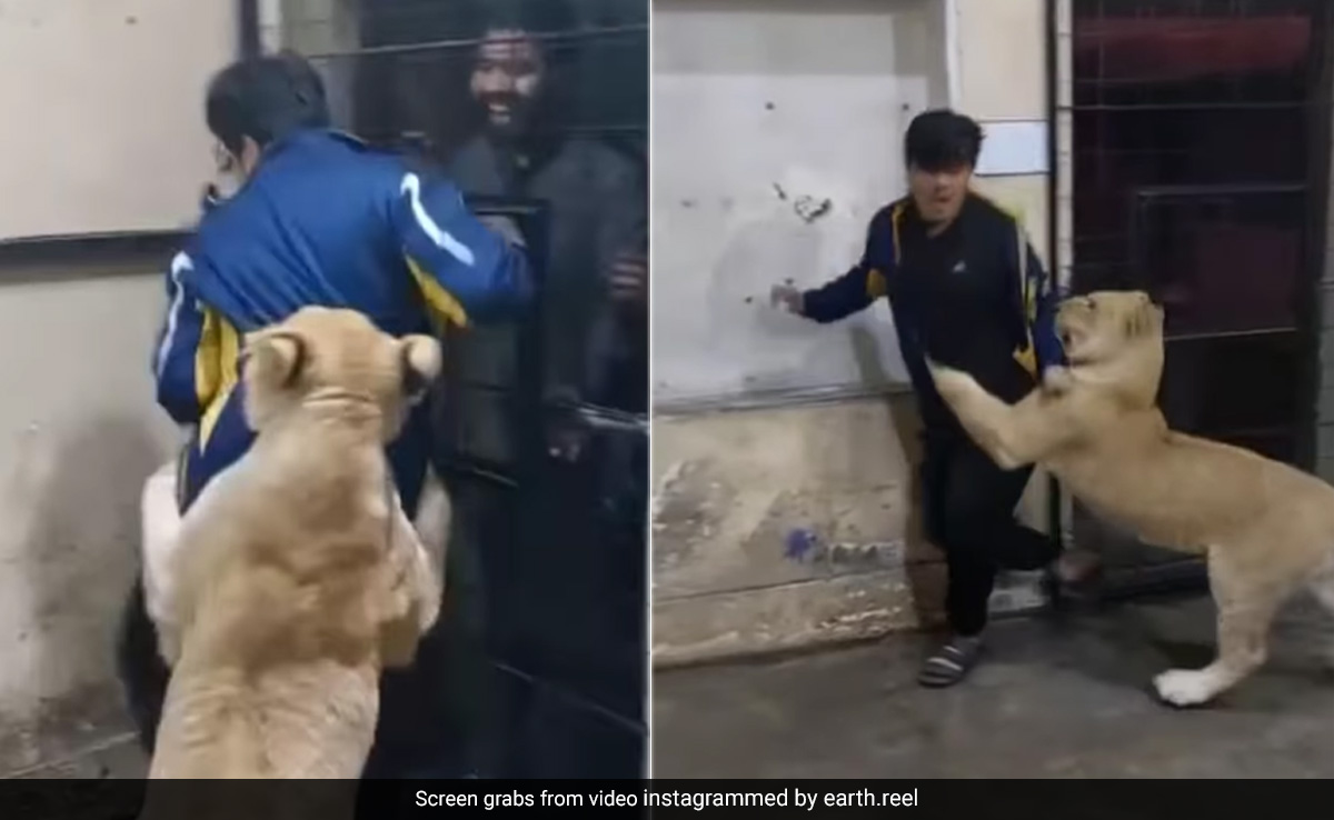 वीडियो में शख्स को शेरनी के पिंजरे में झटपटाते हुए देखा जा सकता है. इस दौरान शख्स शेरनी से खुद को बचाते हुए यहां-वहां भागता दिखाई पड़ता है. वीडियो में शख्स का चेहरा देखकर उसके डर का अंदाजा लगाया जा सकता है. यकीनन जब खूंखार शेरनी पीछे लगी हो तो किसी की भी हालत खराब होना लाजिमी है. वीडियो में आगे शेरनी को शख्स को पकड़ते देखा जा सकता है. इस दौरान शख्स किसी तरह खुद को छुड़ाने की हर संभव कोशिश करता नजर आता है.